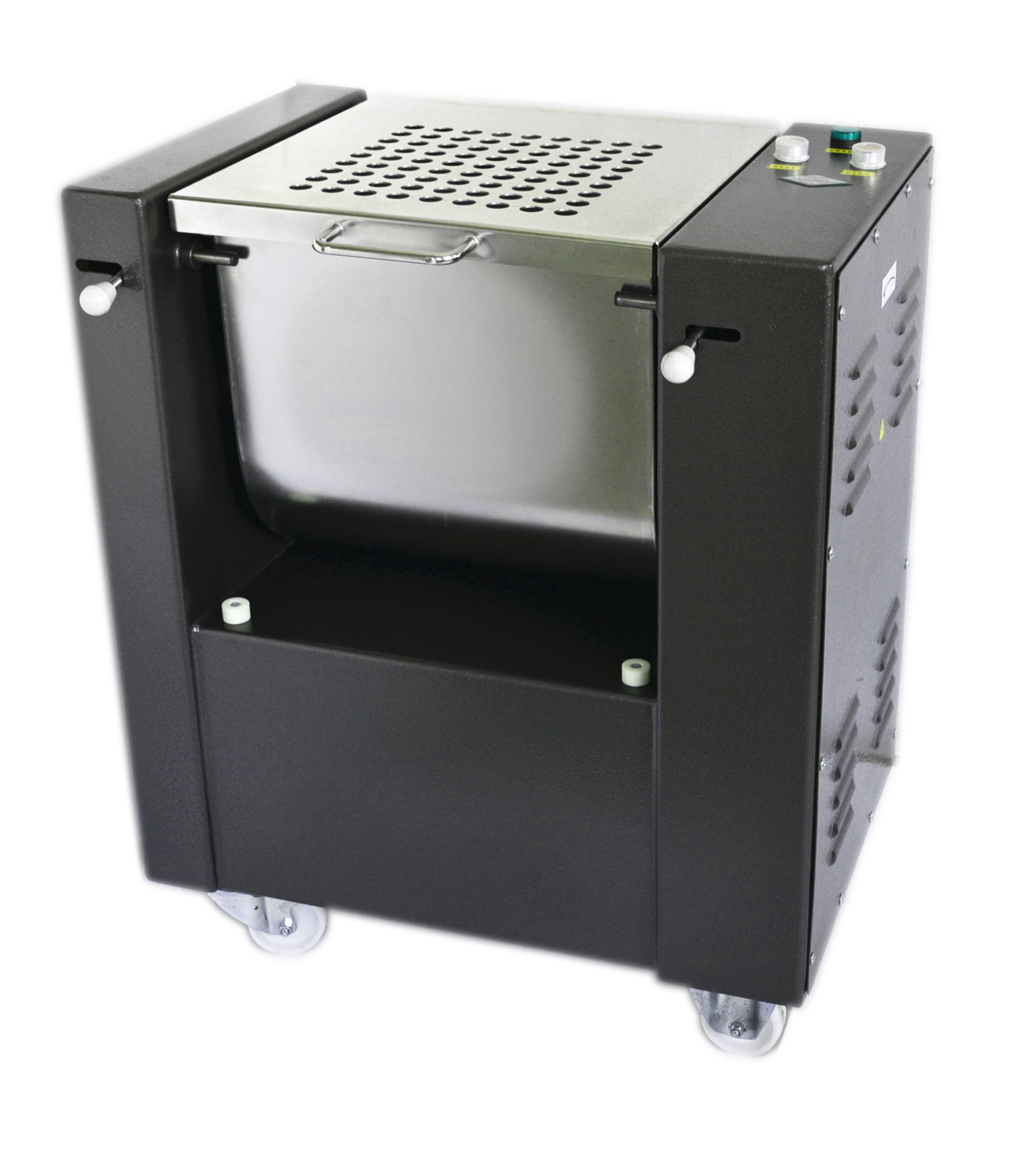 Машина тестомесильная изготавливается из нержавеющей стали в напольном исполнении, на колесиках.